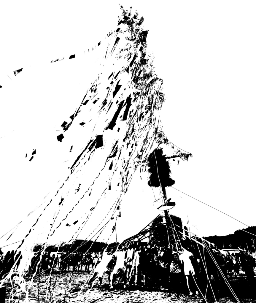 長さ約20メートルの大鉾を御神体として行われる壮大な火祭り国の