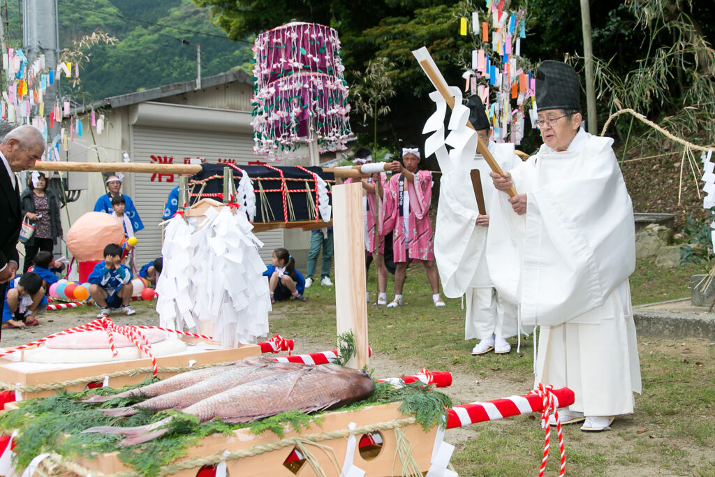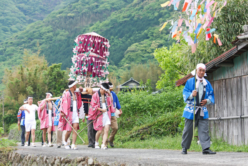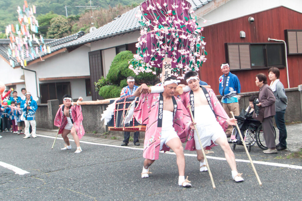 阿月相の浦の賀茂神社の御式年祭は、25年に一度、地区民総出で賑やかに盛大に開催される。